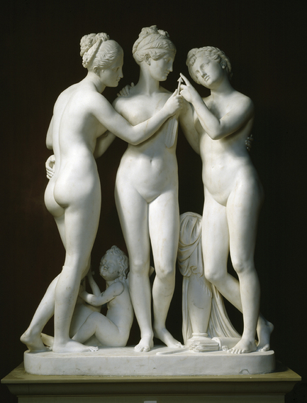 Skulpturen er en omarbejdning af Thorvaldsens tidligere skulptur af Gratierne og Amor